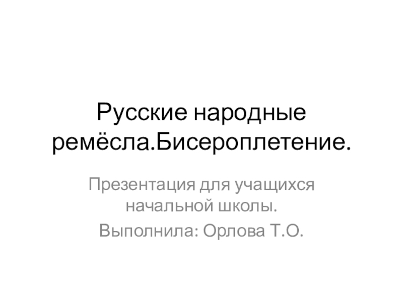 Русские народные ремёсла.Бисероплетение.Презентация для учащихся начальной школы.Выполнила: Орлова Т.О.