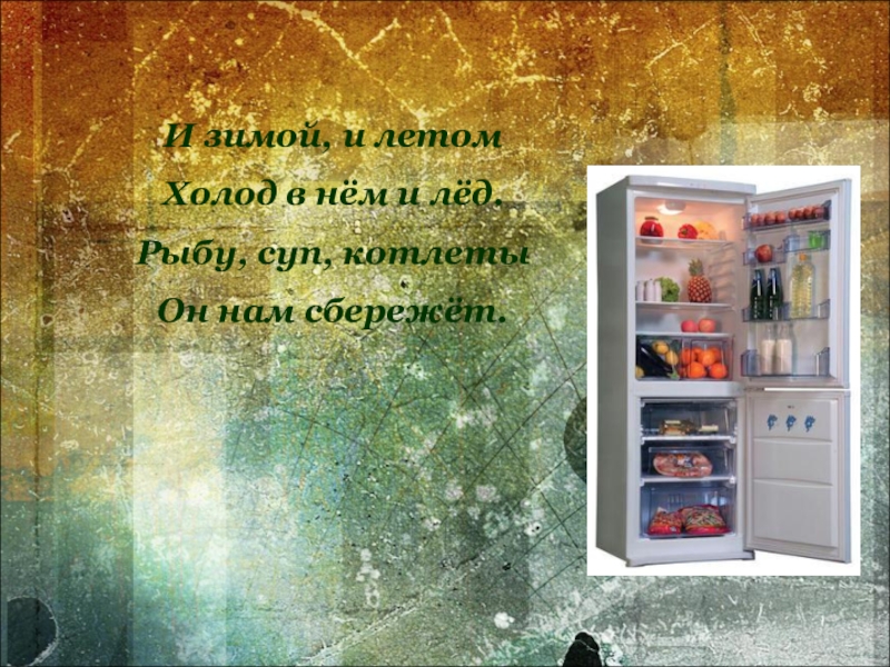 И зимой, и летомХолод в нём и лёд.Рыбу, суп, котлетыОн нам сбережёт.