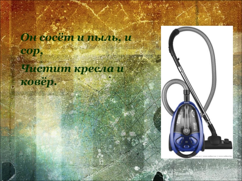 Он сосёт и пыль, и сор,Чистит кресла и ковёр.
