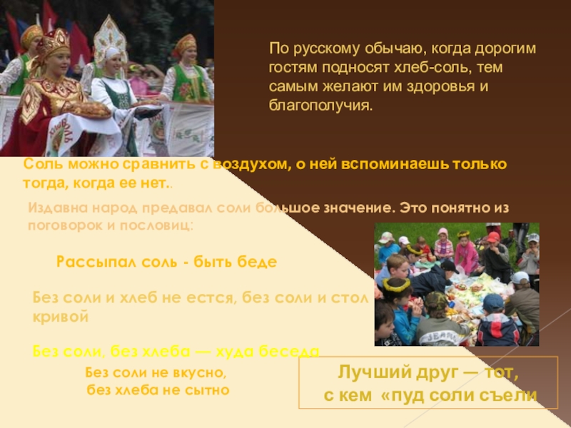 Издавна народ предавал соли большое значение. Это понятно из поговорок и пословиц: