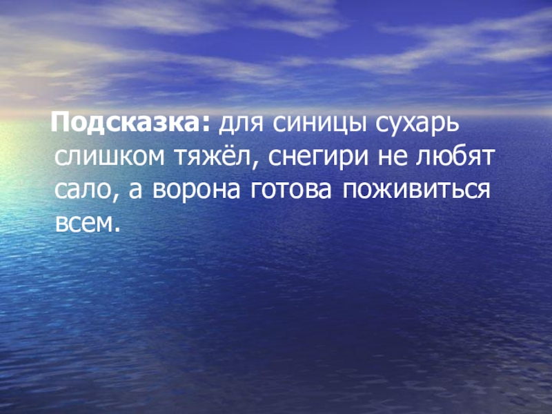 Подсказка: для синицы сухарь слишком тяжёл, снегири не любят сало,