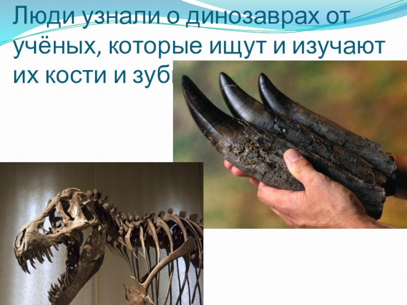 Слайд 6Люди узнали о динозаврах от учёных, которые ищут и изучают их