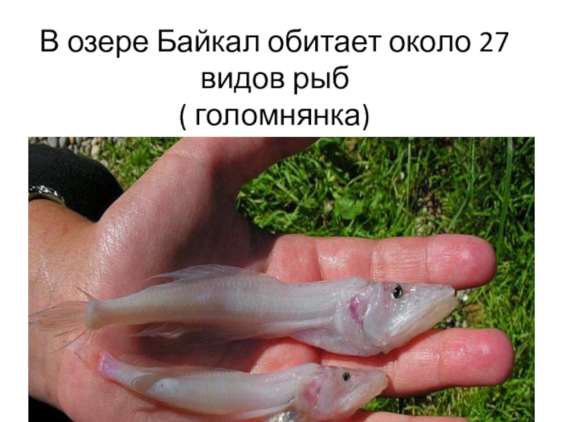 Слайд 7В озере Байкал обитает около 27 видов рыб ( голомнянка)