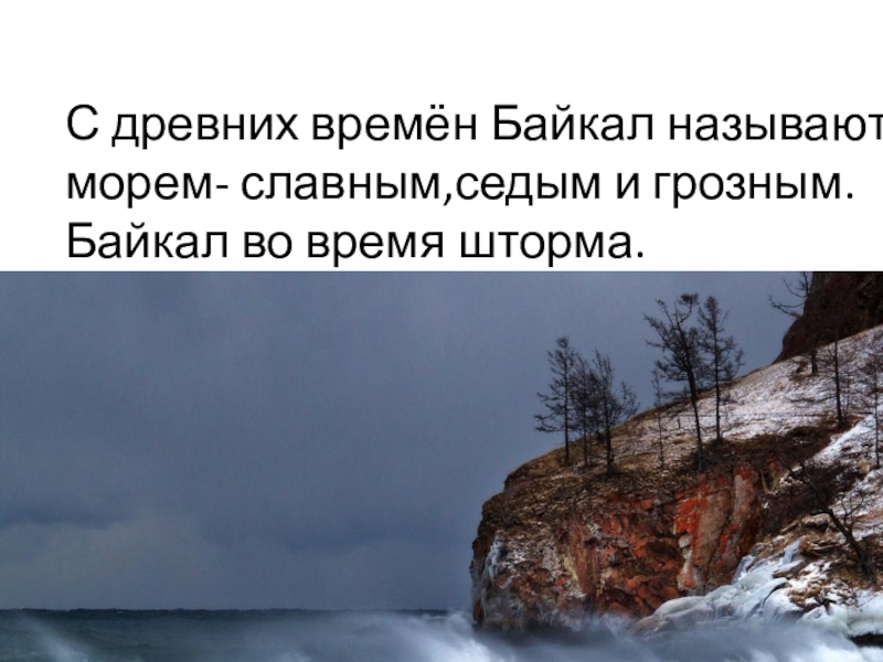 С древних времён Байкал называют морем- славным,седым и грозным. Байкал