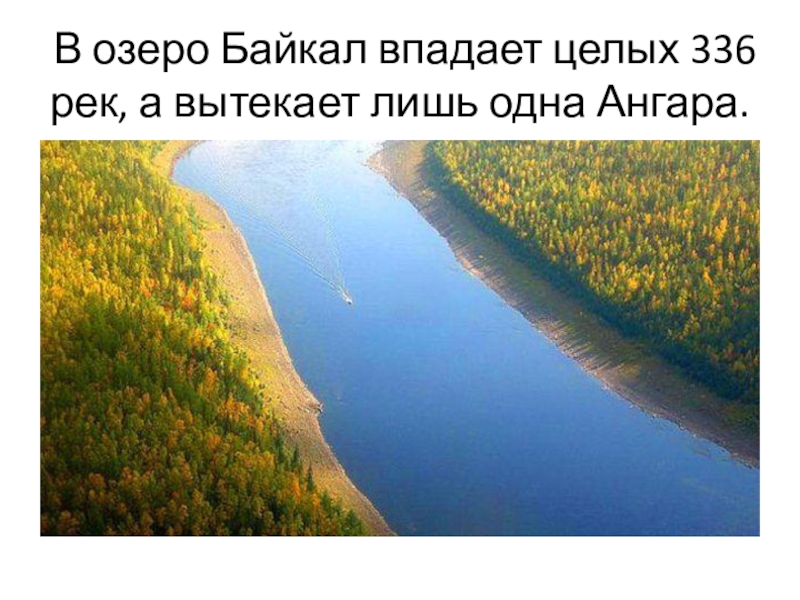 Слайд 6В озеро Байкал впадает целых 336 рек, а вытекает лишь одна