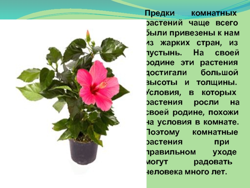 Слайд 4Предки комнатных растений чаще всего были привезены к нам из жарких