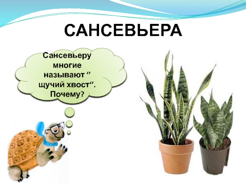 Слайд 9Сансевьеру многие называют ‘’ щучий хвост‘’. Почему?