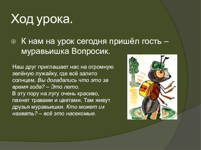 К нам на урок сегодня пришёл гость – муравьишка Вопросик.