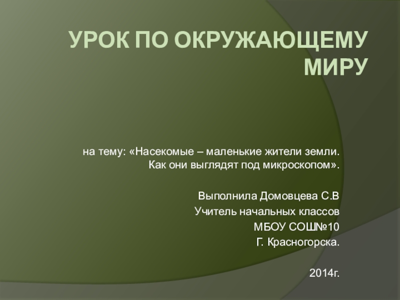 на тему: «Насекомые – маленькие жители земли. Как