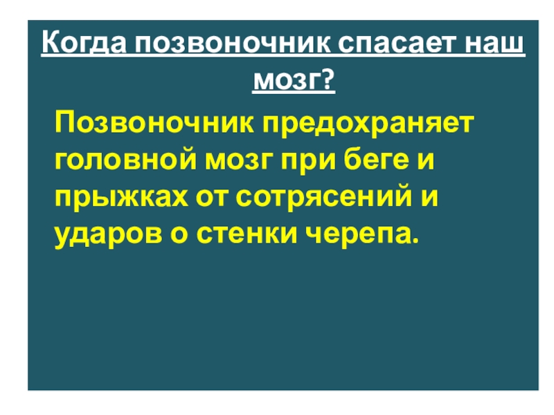 Когда позвоночник спасает наш мозг?  Позвоночник предохраняет головной мозг при беге и прыжках от сотрясений и