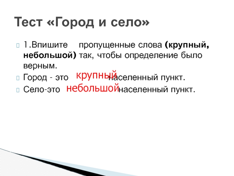 Тест «Город и село»