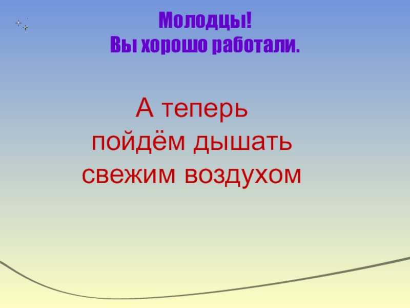 Молодцы! Вы хорошо работали. А теперь пойдём дышать свежим воздухом