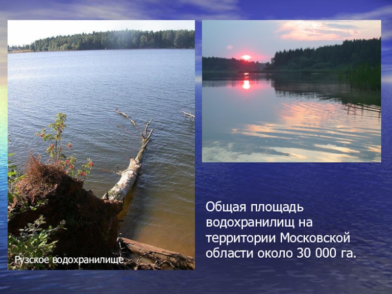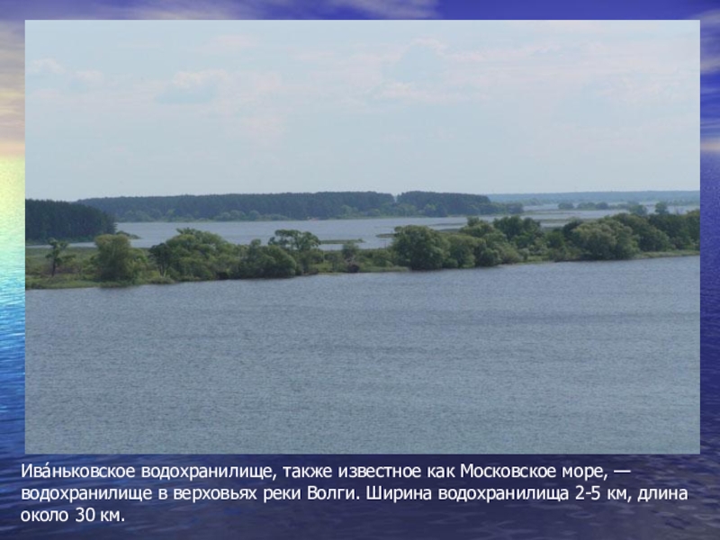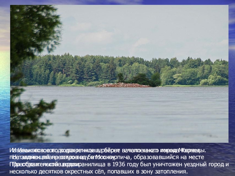 Иваньковское водохранилище в районе затопленного города Корчевы. На заднем плане остров из битого кирпича, образовавшийся на месте Преображенской церкви.