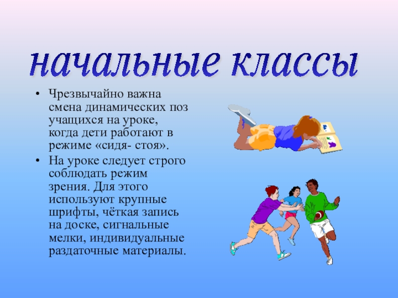рациональная организация двигательной активности учащихся, включающая предусмотренные программой уроки физкультуры, динамические перемены и активные паузы в режиме дня, а также спортивно-массовую работу;