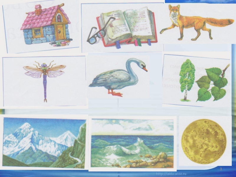 ПРИРОДАЧто означает это слово?Это то, что нас окружает и возникло без участия человека.Посмотрите на картинки и выберите объекты природы.