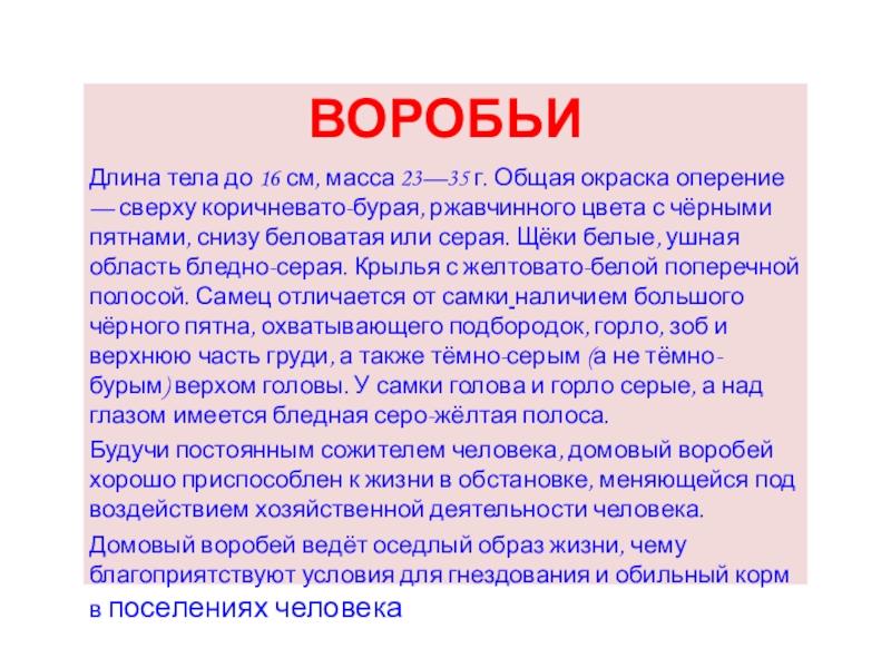 Слайд 7ВОРОБЬИ