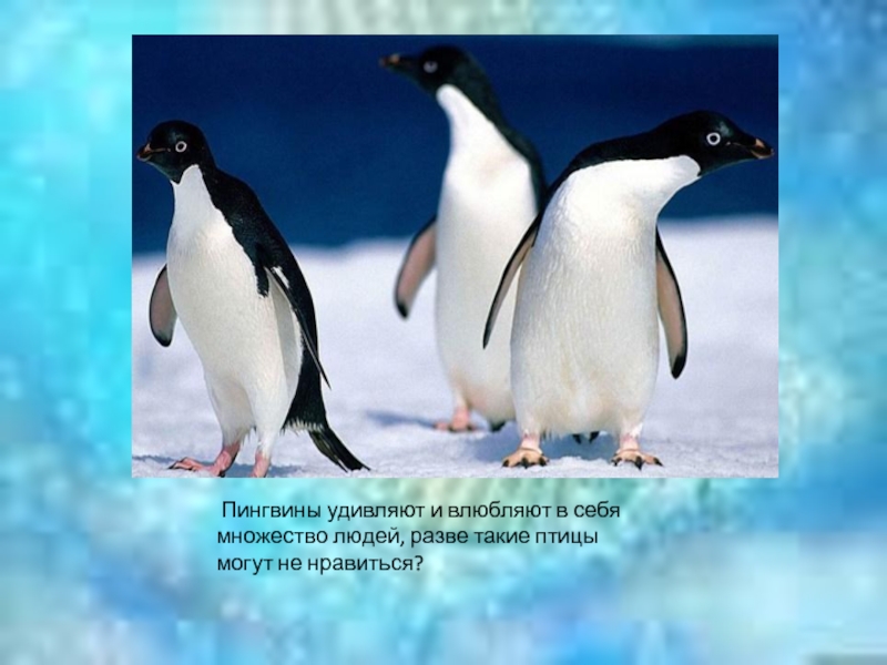 Слайд 4 Пингвины удивляют и влюбляют в себя множество людей, разве такие птицы