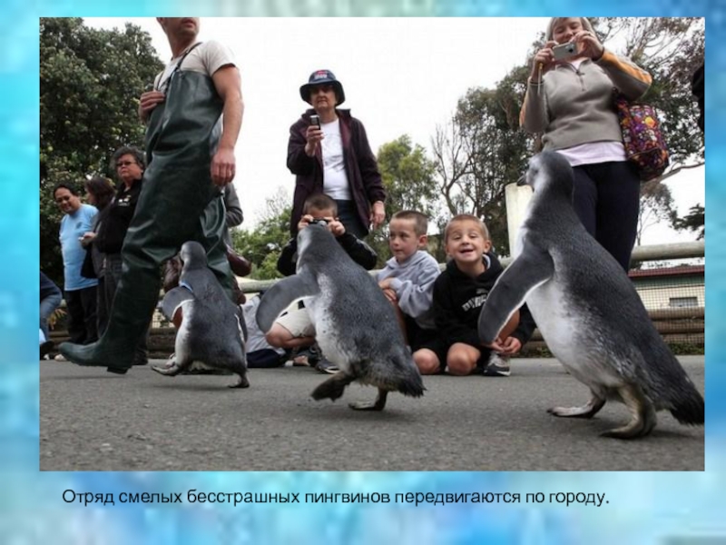 Слайд 6 Отряд смелых бесстрашных пингвинов передвигаются по городу.
