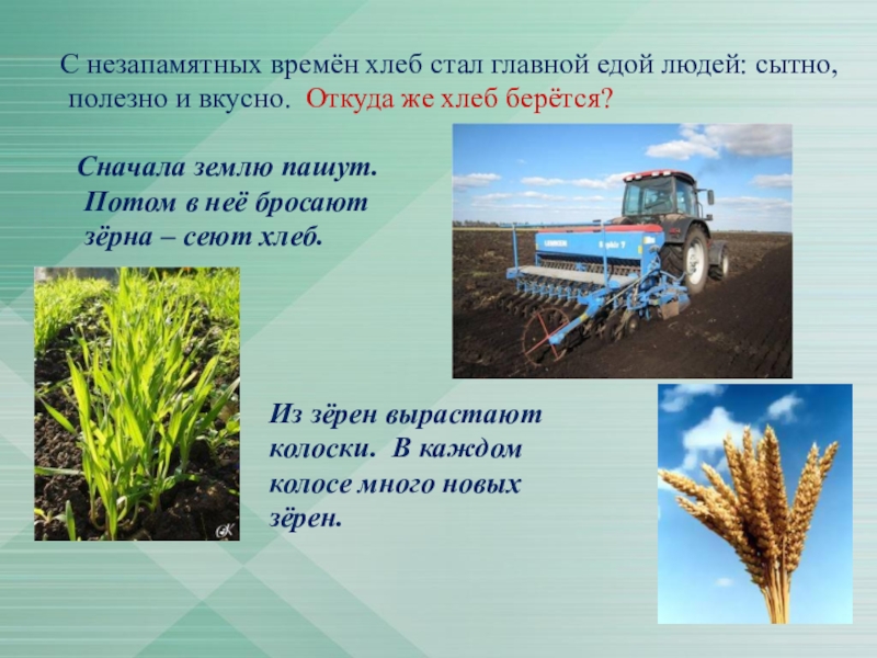 Из зёрен вырастают колоски. В каждом колосе много новых зёрен.