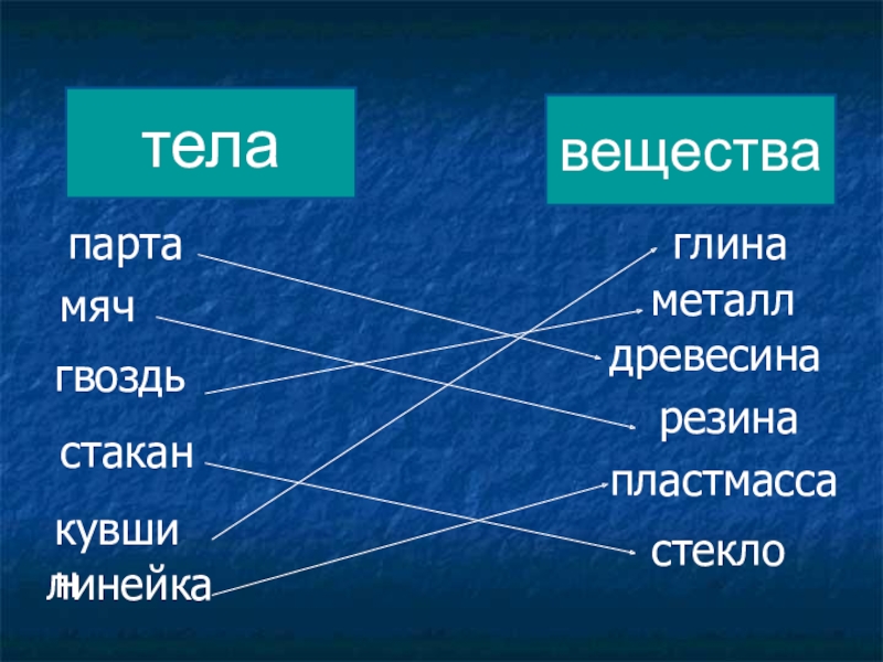 телавеществапартамячгвоздьстаканкувшинлинейкаглинаметаллдревесинарезинапластмассастекло