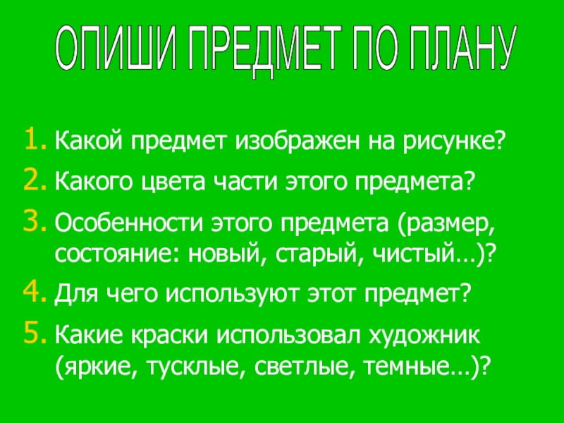 ОПИШИ ПРЕДМЕТ ПО ПЛАНУ