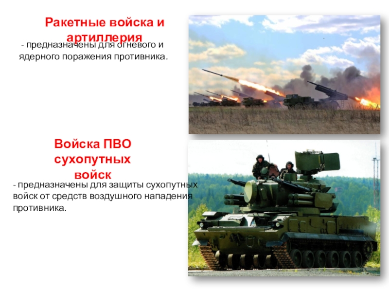 - предназначены для защиты сухопутных войск от средств воздушного нападения противника.