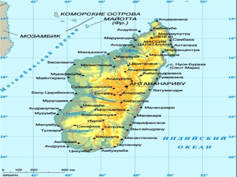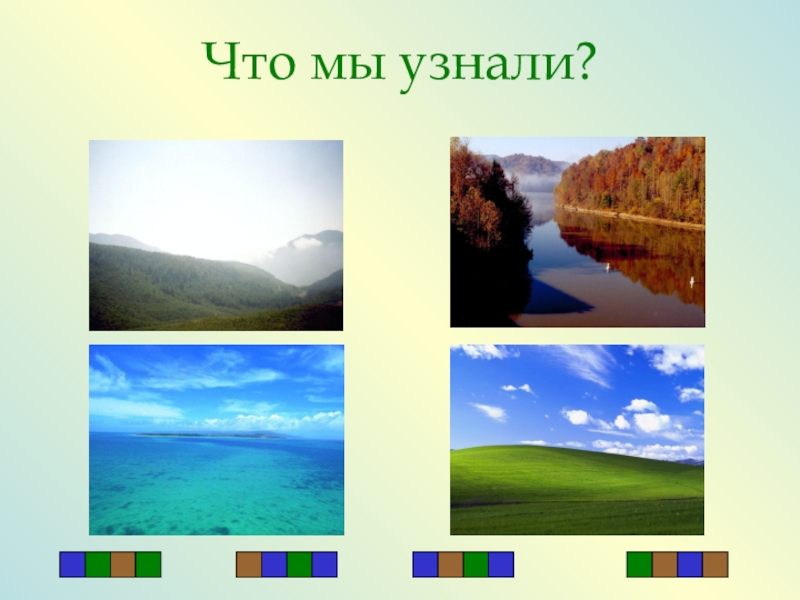 - Возвышенность- НизменностьГорыРавнинаУровень океана -Шкала высот и глубин