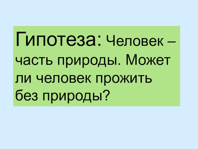 Слайд 4Гипотеза: Человек – часть природы. Может ли человек прожить без природы?