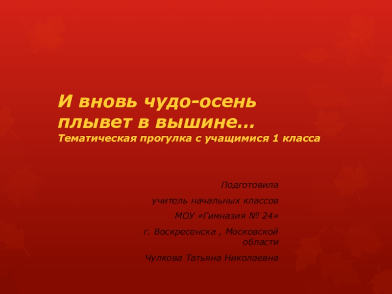 Слайд 1И вновь чудо-осень плывет в вышине… Тематическая прогулка с учащимися 1 класса
