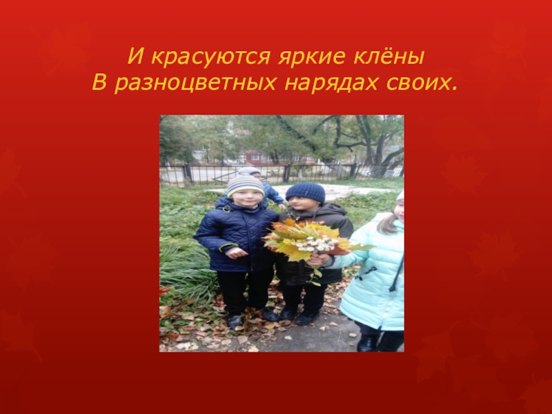 Слайд 8И красуются яркие клёны В разноцветных нарядах своих.