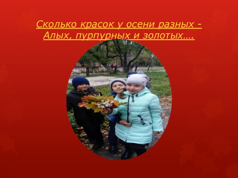 Слайд 7Сколько красок у осени разных - Алых, пурпурных и золотых….