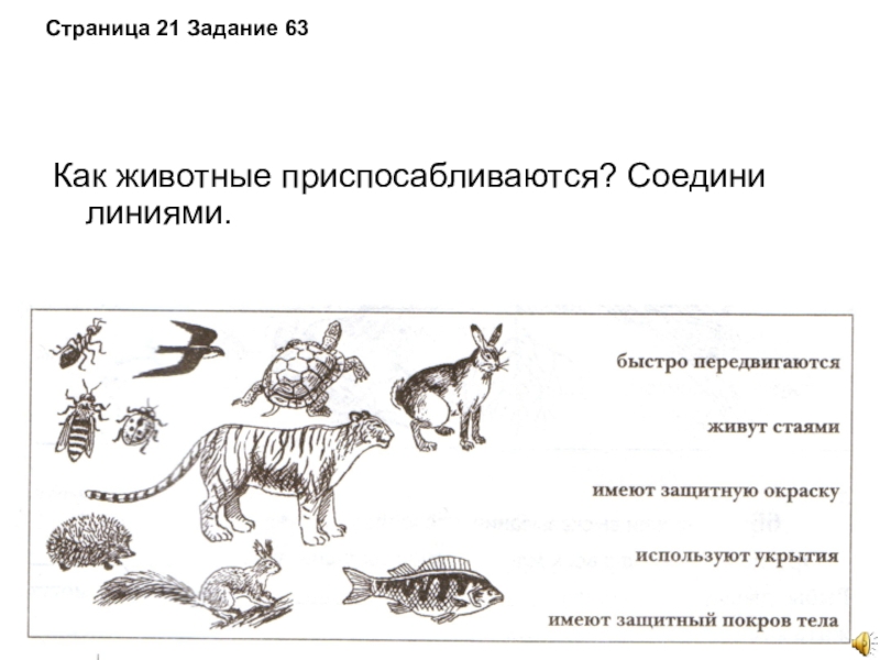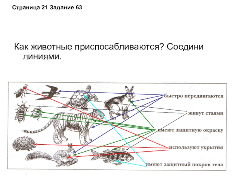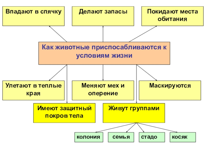 раскрыть основные способы приспособления к условиям жизни; расширить общий кругозор ; формировать внимательное и бережное отношение к окружающей природе.