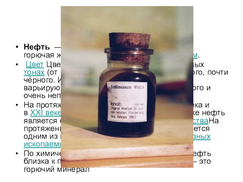 Нефть — природная маслянистая горючая жидкость со специфическим запахом.