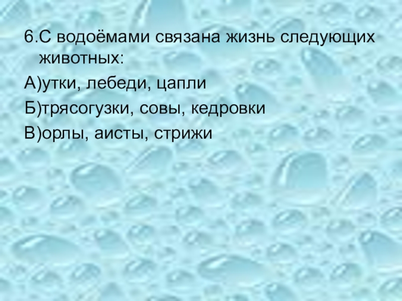 Слайд 76.С водоёмами связана жизнь следующих животных: