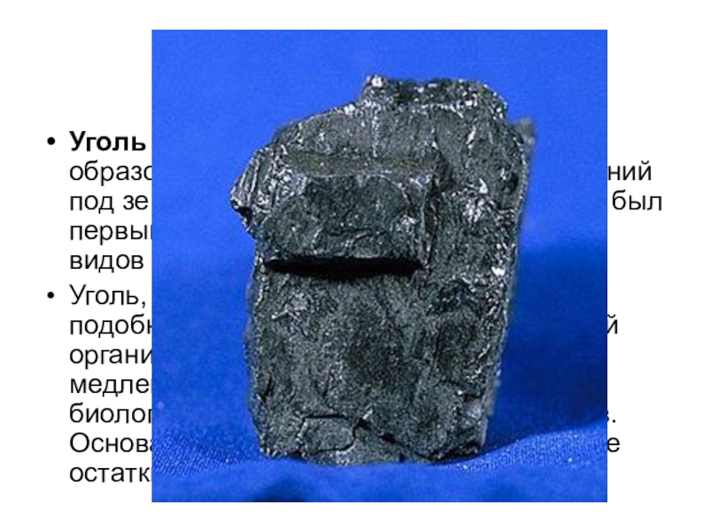 без доступа кислорода. Уголь был первым из используемых человеком видов ископаемого топлива.