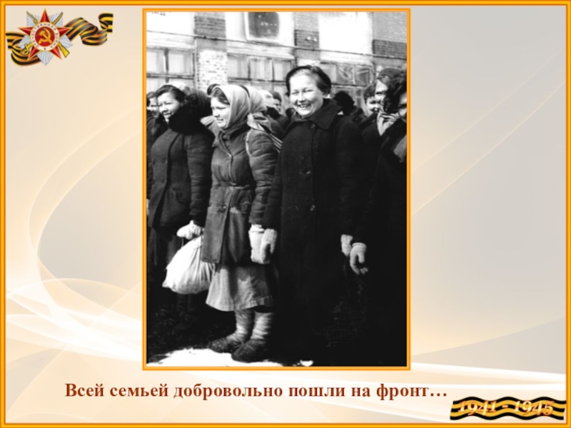 Слайд 12Всей семьей добровольно пошли на фронт…