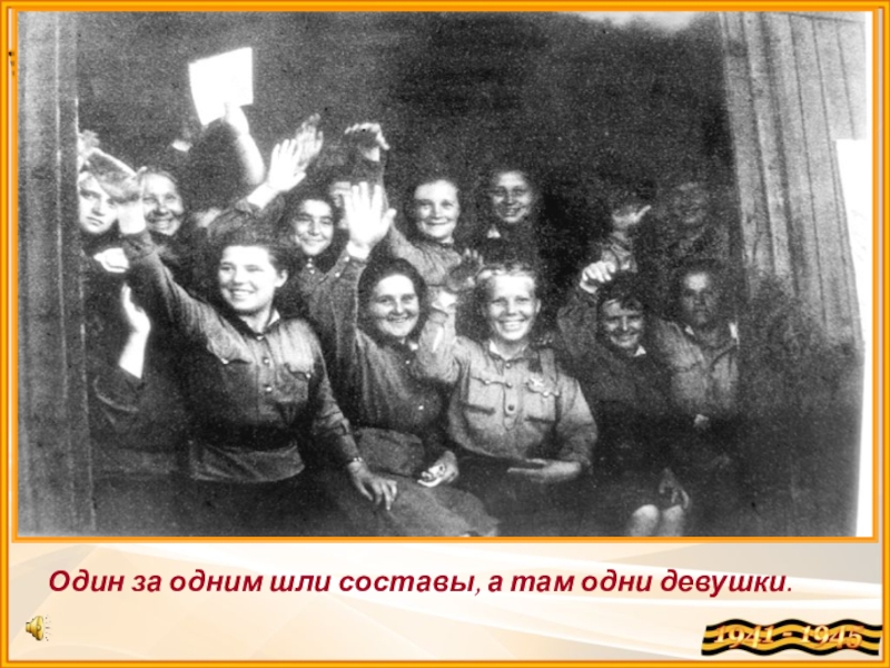 Слайд 14 Один за одним шли составы, а там одни девушки.