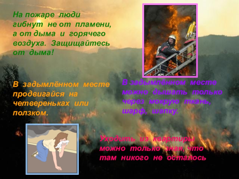 В задымлённом месте продвигайся на четвереньках или ползком.