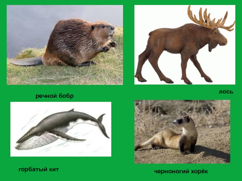речной бобрлосьчерноногий хорёкгорбатый кит