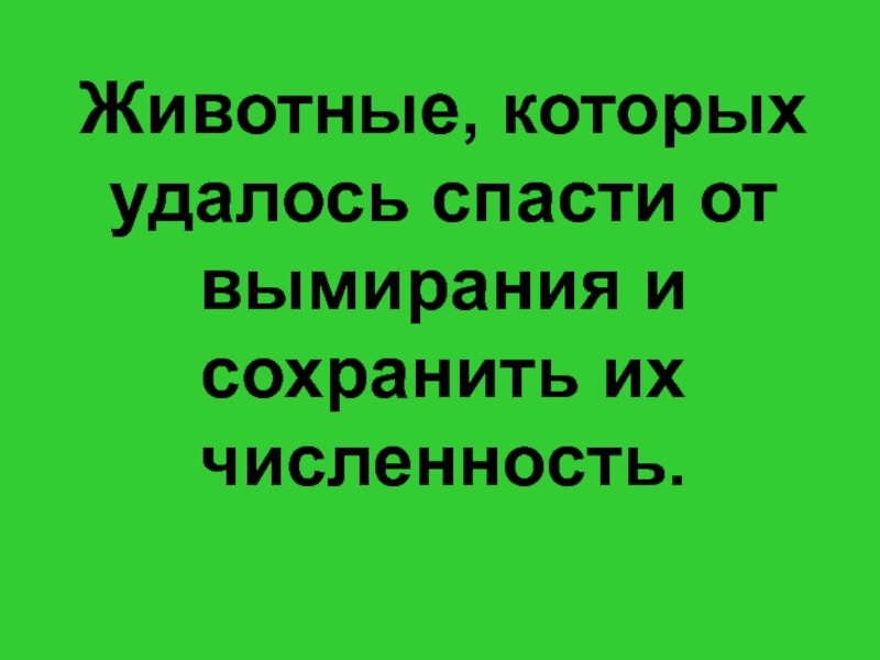 Слайд 18Животные, которых удалось спасти от вымирания и сохранить их численность.