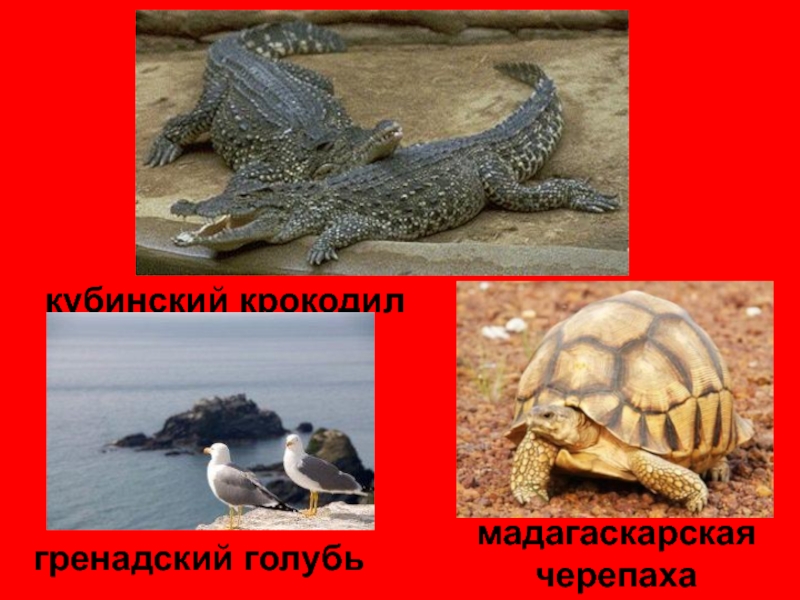 кубинский крокодилмадагаскарская черепаха гренадский голубь
