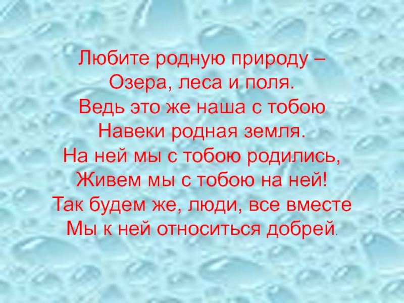 Слайд 26Любите родную природу – Озера, леса и поля. Ведь это же наша с