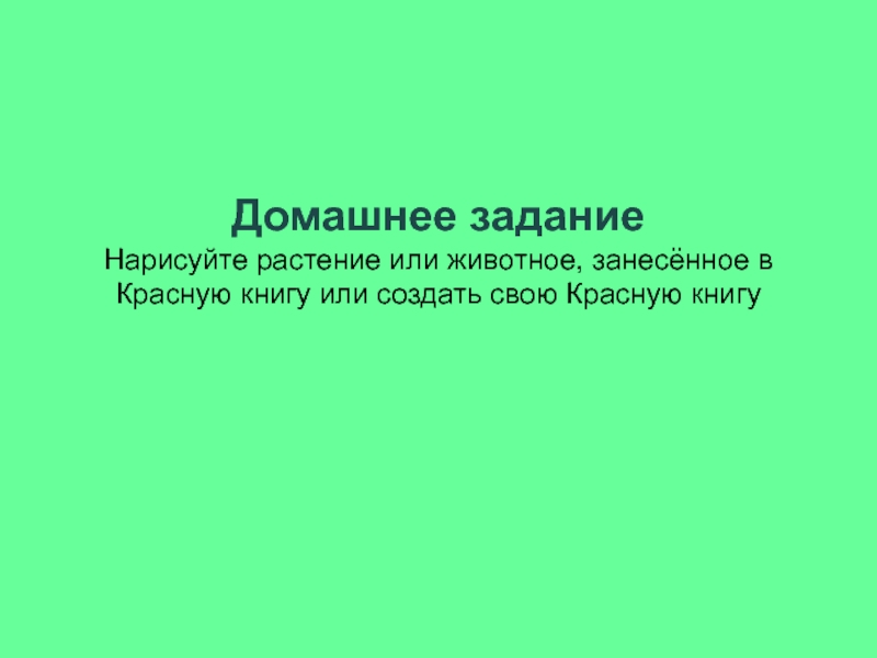 Слайд 27Домашнее задание Нарисуйте растение или животное, занесённое в Красную книгу или создать