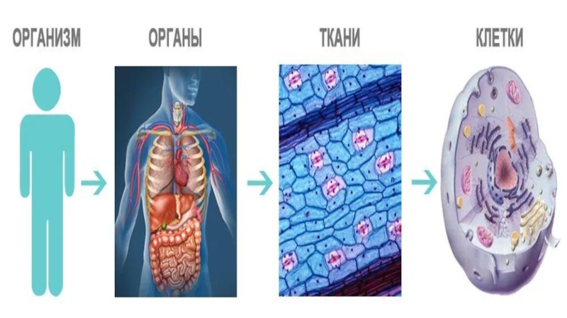 Слайд 12Органы, ткани, организм человека, клетки