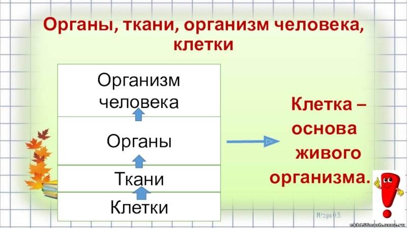 Органы, ткани, организм человека, клетки    Клетка –   основа    живого