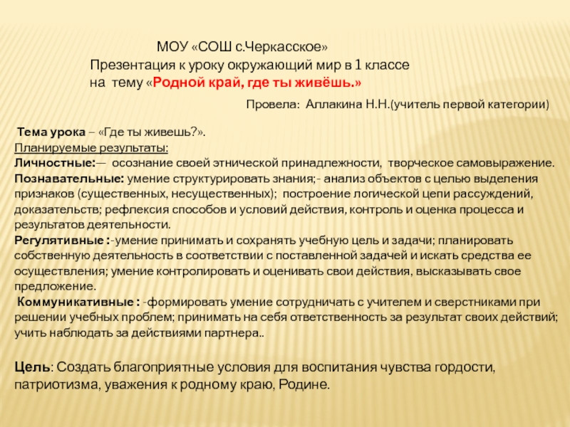 Личностные:— осознание своей этнической принадлежности, творческое самовыражение.