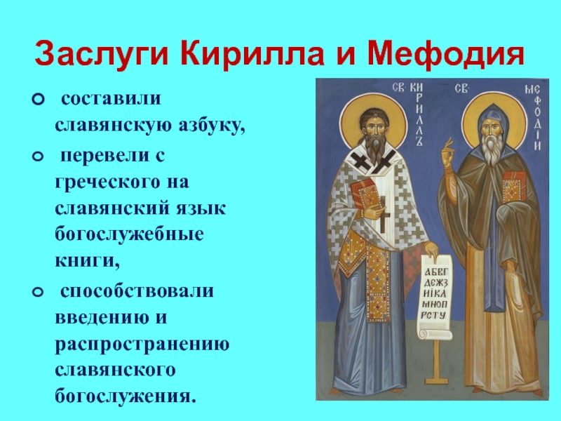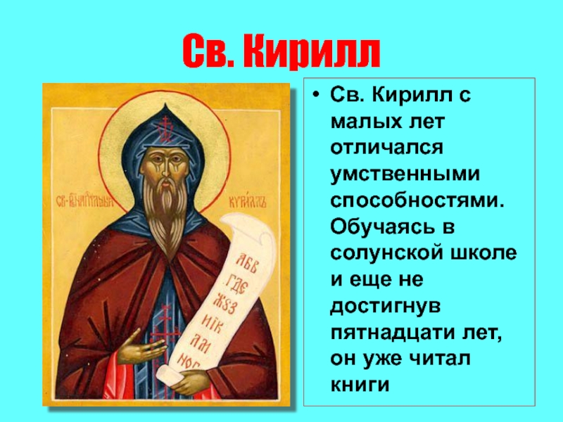 Всё умели наши предки: и землю пахать, и холсты ткать, и дома-терема рубить. Много чего умели, да вот грамоты не ведали, книг не знали. И должен был кто-то научить их.