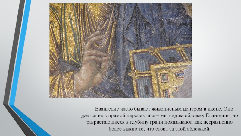 Слайд 2 Евангелие часто бывает живописным центром в иконе. Оно дается не в