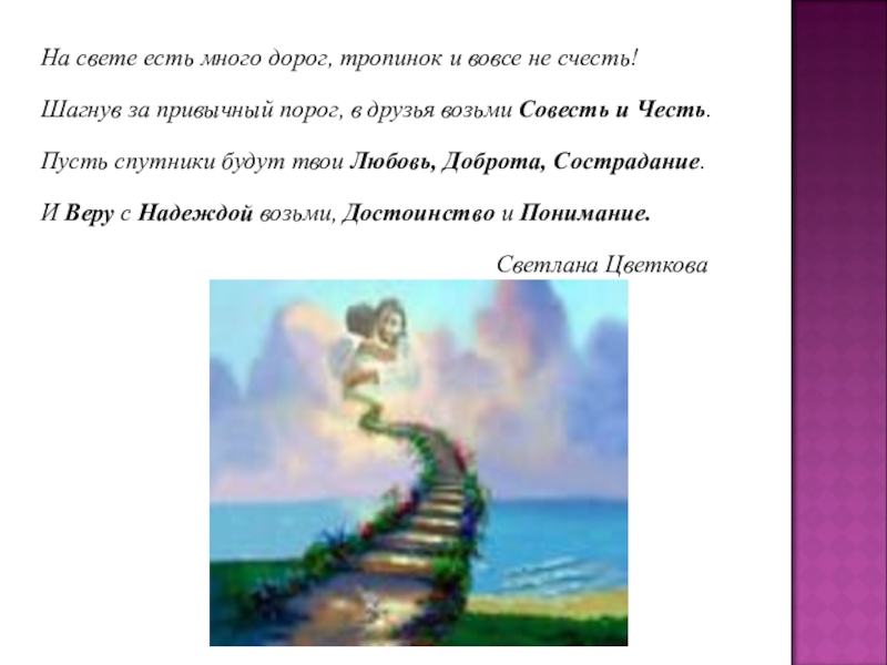 Шагнув за привычный порог, в друзья возьми Совесть и Честь.