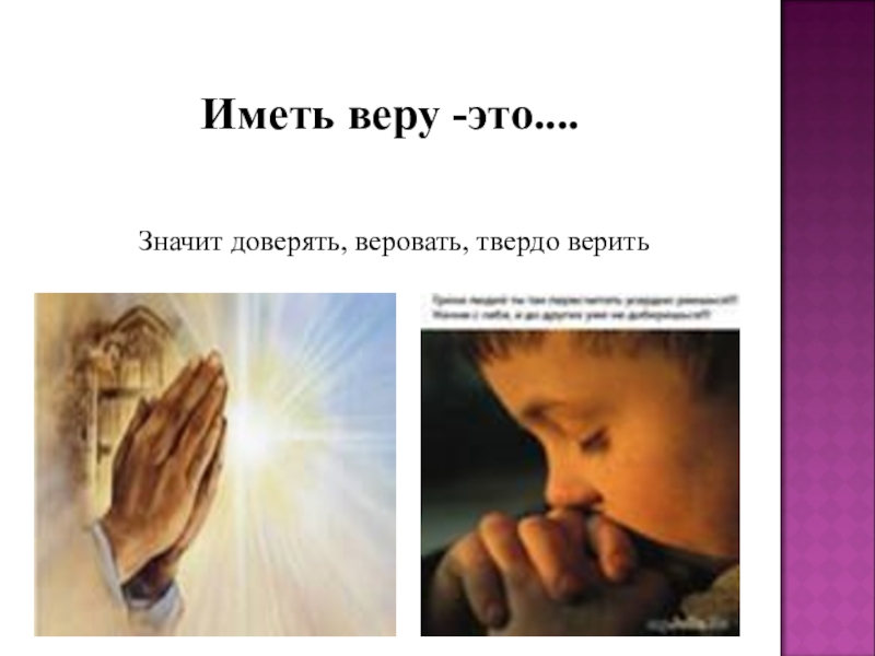 Значит доверять, веровать, твердо веритьИметь веру -это....